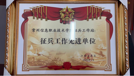 近日,在武进区2022年度党管武装工作会议上获悉,常州信息职业技术学院荣获江苏省“2021年度征兵工作先进单位”和常州市“2021年度征兵工作先进单位”称号。