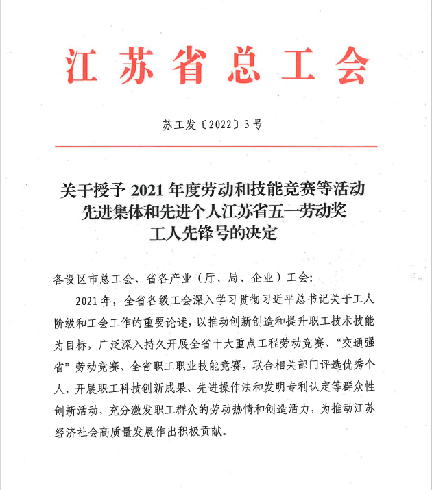 近日,江苏省总工会发布《关于授予2021年度劳动和技能竞赛等活动先进集体和先进个人江苏省五一劳动奖工人先锋号的决定》(苏工发〔 2022〕3号)文件,常州机电职业技术学院的经济管理学院教师陈勇获得“江苏省五一劳动奖章”荣誉称号。