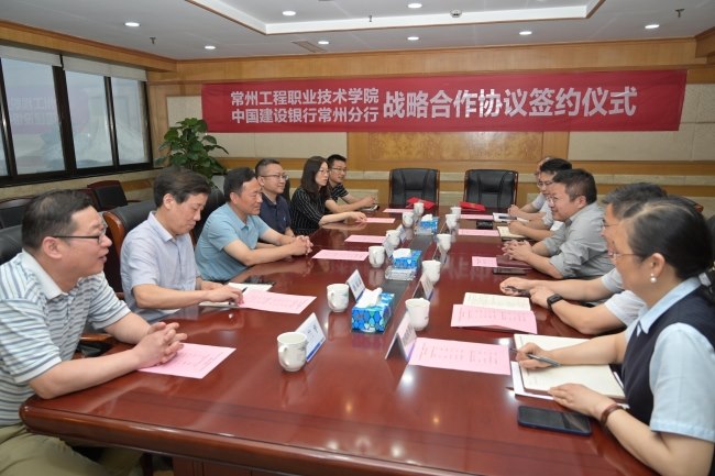 彭军首先致辞,表示常州工程职业技术学院是建行常州分行长期、坚定、友好的合作伙伴,希望双方能够发挥各自平台优势,不断拓展合作空间,在多方面开展更深层次合作。彭军行长相信通过双方的真诚团结、密切合作,定能进一步推动双方建立新型战略合作伙伴关系。
