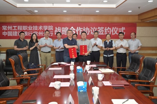 6月15日,我校与中国建设银行常州分行合作共建“智慧校园”签约仪式在建行会议室举行。我校党委书记王光文,党委副书记、校长李雄威,党委委员、副校长施福新,中国建设银行常州分行行长彭军、副行长蒋红星及双方有关业务部门负责人出席签约仪式。