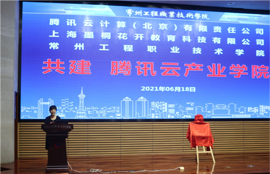 6月18日,我校与腾讯云计算(北京)有限责任公司、上海墨桐花开教育科技有限公司三方共建“腾讯云产业学院”成立,并举行揭牌与产业教授聘任仪式。