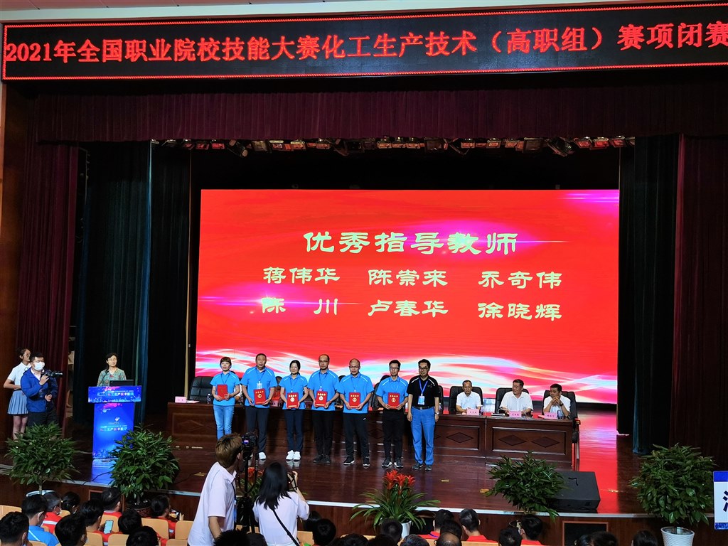 日前,2021年全国职业院校技能大赛化工生产技术赛项(高职组)在宁夏银川举行,来自全国26个省、直辖市,自治区的26支代表队参加了比赛。我校化工学院乔奇伟、陈川老师指导的乙丁、唐炜、陈秀荣获团体一等奖。取得了自2006年创办行业赛以来15连冠。