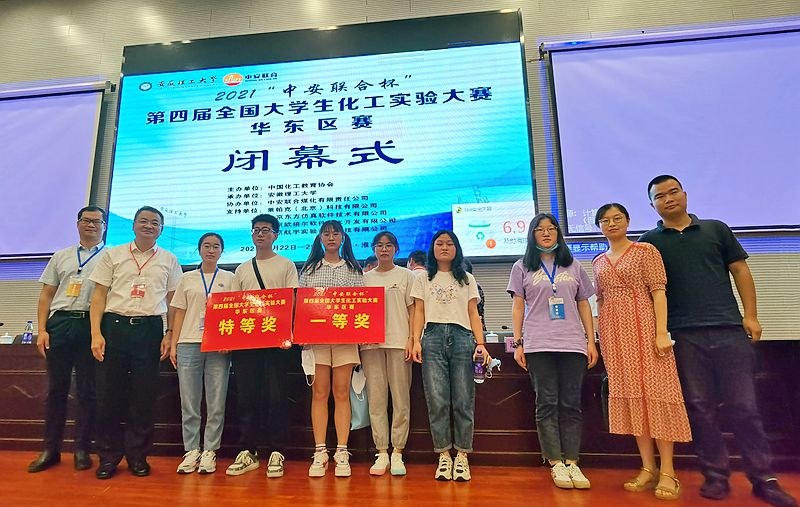 7月23-25日,第四届全国大学生化工实验大赛华东区赛在安徽理工大学举行,来自浙江大学、上海交通大学、华东理工大学等41所高校的100支代表队共400余名师生参赛。经过化工原理理论、化工单元仿真、化工原理实验等环节的激烈角逐,我校王泰宇、刘雨、赵桐团队斩获特等奖并晋级国赛,许璐净、刘玉莲、余兰兰团队斩获一等奖。
