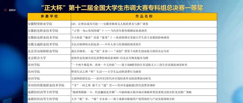 4月30日至5月1日,“正大杯”第12届全国大学生市场调查与分析大赛专科组总决赛在线上举行,本次大赛由中国商业统计学会主办,问卷网公司提供直播技术支持。常州纺织服装职业技术学院的经贸学院两支代表队在夏茵、杨永超等老师指导下历经初赛与总决赛,克服疫情阻碍,最终获得全国一等奖和二等奖好成绩。