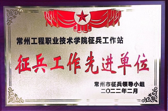 近日,从常州市征兵领导小组获悉,常州工程职业技术学院征兵工作站荣获常州市“征兵工作先进单位”称号。