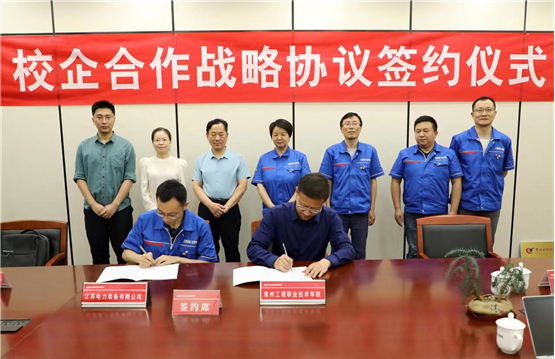 5月24日下午,常州工程职业技术学院与江苏电力装备有限公司(以下简称“电力装备公司”)校企合作战略协议签约仪式在电力装备公司会议室举行。电力装备公司总经理、党委副书记毛敏,公司人力资源部主任刘斌、学校党委书记王光文、智造学院党总支书记兼院长周皞等参加签约仪式,仪式由毛敏主持。