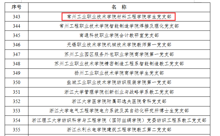 5月24日,教育部公布了第二批“全国党建工作样板支部”建设单位验收通过名单,常州工业职业技术学院的材料工程学院党总支学生党支部顺利通过验收。