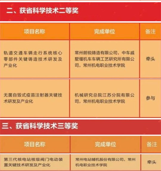 近日,江苏省科学技术奖励大会在南京召开,表彰奖励2020-2021年度江苏省科学技术奖获奖单位。常州机电职业技术学院在江苏省科学技术奖评选工作中取得7个奖项的优异成绩,其中一等奖1项,二等奖4项,三等奖2项。