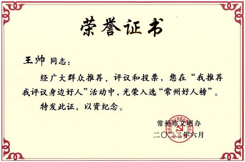 近日,常州市委宣传部、市文明办召开新闻发布会,公布了2022年常州市疫情防控“身边好人”评选结果,常州工业职业技术学院的经贸管理学院辅导员王帅入选“常州好人榜”。