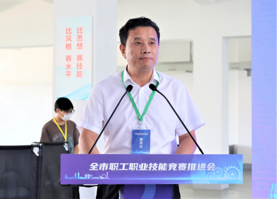 他希望各位选手能以赛促学强技能、以赛促改助转型,进一步提升理论水平和实操能力,了解“智改数转”企业信息化岗位的需要,适应常州高端装备制造业对高技能人才和高素质产业工人的需求,实现个人成长与城市发展同频共振,为奋力推进“532”发展战略注入强劲动能,为建设“国际化智造名城、长三角中轴枢纽”提供有力人才支撑,以实际行动迎接党的二十大胜利召开。