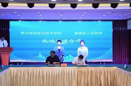7月19日,常州信息职业技术学院与泰州市姜堰区人民政府举行“青年工程师结对培养”暨校地企合作签约仪式,学校校长眭碧霞,党委委员、副校长陈刚,姜堰区区长孙靓靓等出席活动并见证签约。会上同时进行了太平洋精锻科技股份有限公司与我校智能装备学院冠名班、华芯半导体科技有限公司与我校电子工程学院冠名班的签约仪式,相关二级学院和职能部门负责人参加上述活动。