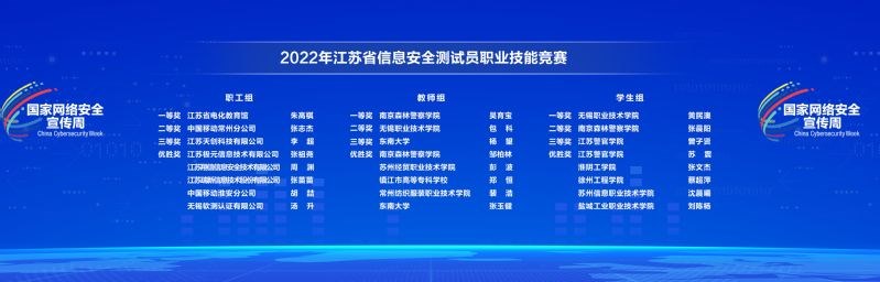 2022年9月5日,江苏省网络安全周在盐城隆重开幕,在开幕式上喜讯传来,常州纺织服装职业技术学院的机电学院两项赛事取得佳绩,分别是“2022年‘领航杯’江苏省第七届青少年网络信息安全应用能力竞赛(高校组)线下决赛”和“2022年江苏省第一届信息安全测试员职业技能竞赛”。
