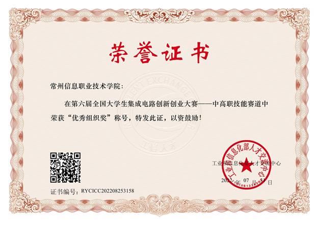 第六届全国大学生集成电路创新创业大赛落幕。常州信息职业技术学院荣获一等奖2项、三等奖1项,是全国高职院校取得的最好成绩。学校获大赛优秀组织奖。