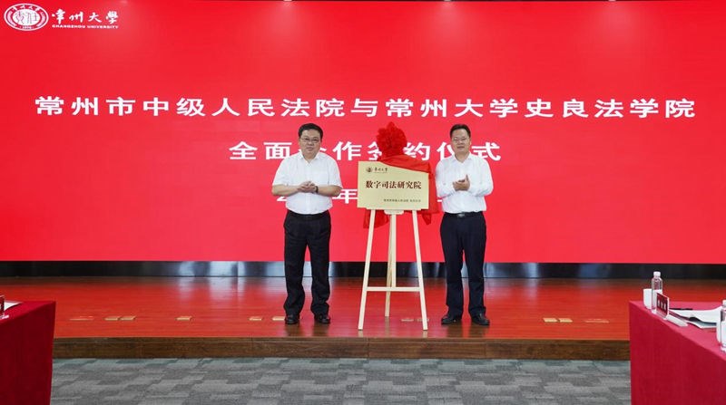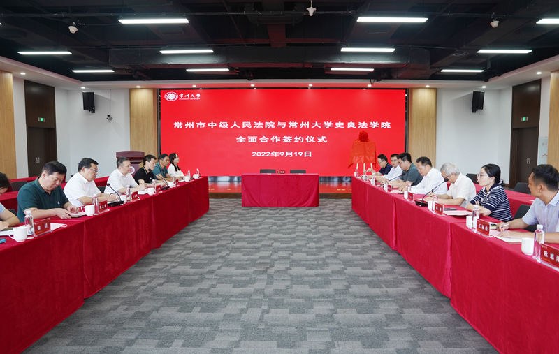 9月19日下午,常州市中级人民法院(以下简称“常州中院”)与常州大学史良法学院在西太湖校区立言楼举行全面战略合作协议签约仪式。常州中院党组书记、院长曹忠明,党组成员、政治部主任张立群及相关部门负责同志,常州大学党委常委、纪委书记、派驻监察专员沈新奎,史良法学院名誉院长曹义孙,史良法学院相关负责人出席会议。