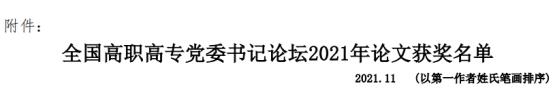 日前,全国高职高专党委书记论坛2021年论文获奖名单公布,我校3篇论文获得奖项,其中一等奖2项。