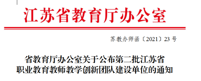 日前,省教育厅办公室印发通知,我校杨诚老师作为团队负责人的信息安全技术应用教学团队、戴建平老师作为团队负责人的电子商务教学团队和张志柏老师作为团队负责人的电气自动化技术教学团队,入选江苏省第二批职业教育教师教学创新团队立项建设单位名单,其中杨诚团队还同时入选国家级职业教育教师教学创新团队立项单位。