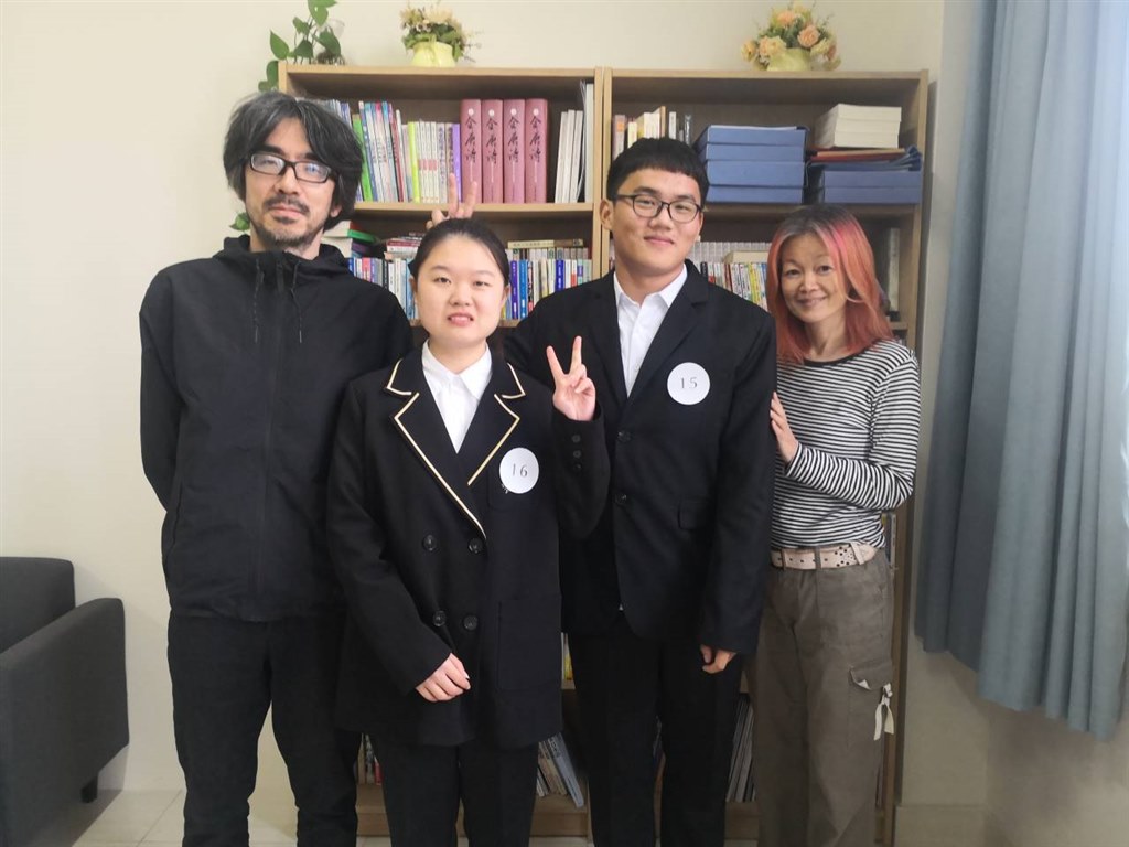 参赛学生潘丹妮(左二)、纪周飞(右二)与指导教师渡边泰光(左一)、山室泉(右一)合影