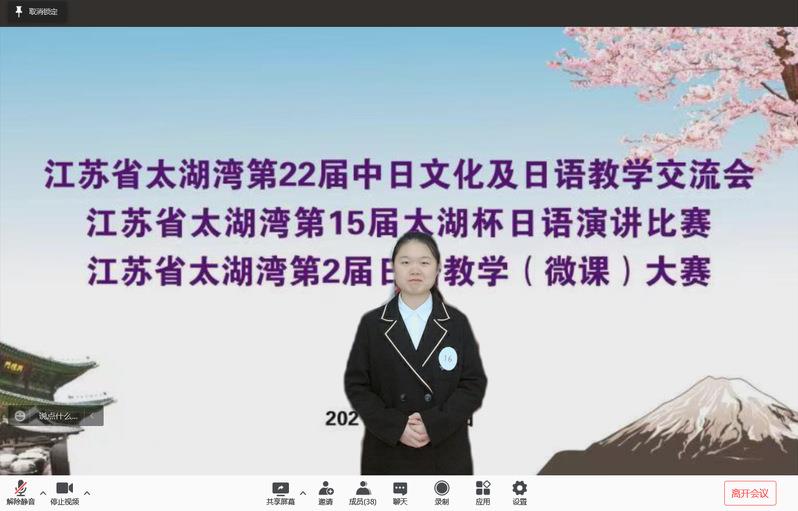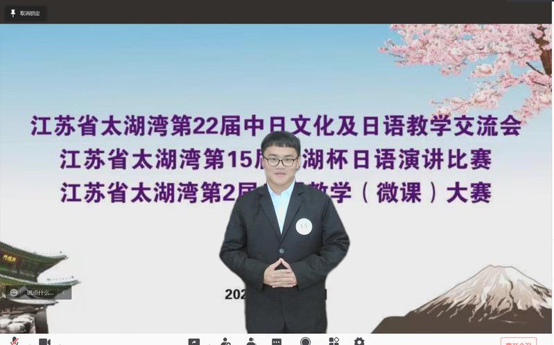 11月20日下午,由江苏省外办亚洲处、无锡、常州和苏州三市外办、无锡市教育局、无锡市翻译协会、常州市翻译协会主办,江南大学承办的江苏省太湖湾第15届太湖杯日语演讲比赛以线上形式在江南大学举行,来自苏锡常三市的学生和社会在职人员分本科组(18人)、专科组(15人)和社会组(9人)三大组举行赛事。我校外国语学院日语系学生潘丹妮(指导老师:渡边泰光、刘萍)、纪周飞(指导老师:山室泉、许长明)分获本科组特等奖和一等奖。
