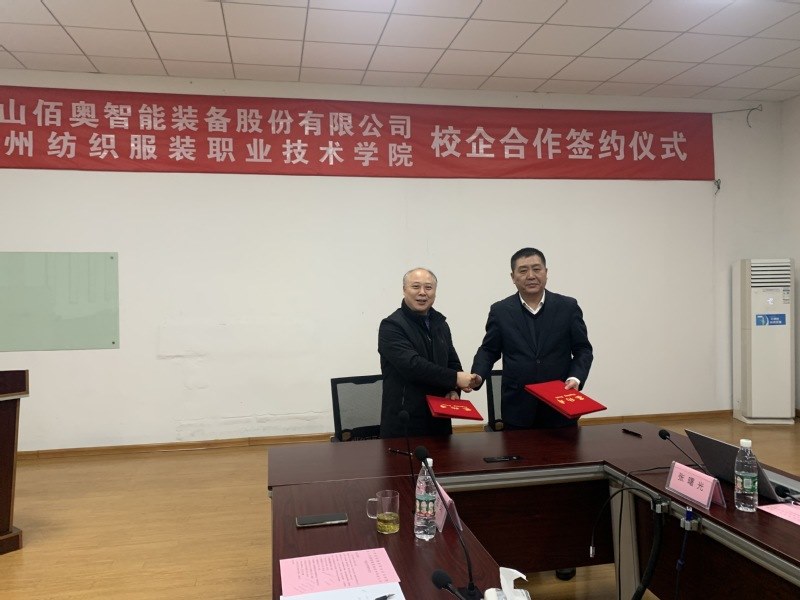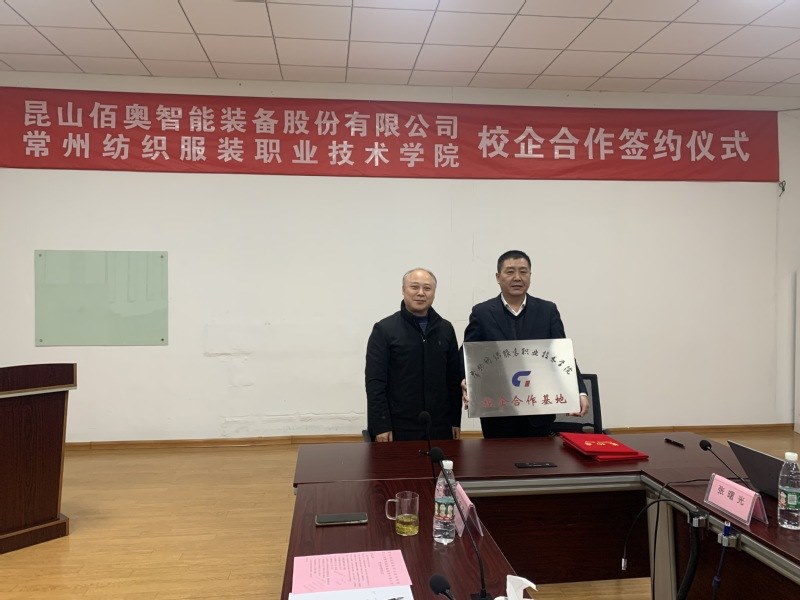 在昆山佰奥智能装备股份有限公司走访中,董事长霄朝蓬和衣缝智能分公司总经理周铭分别介绍了企业的发展和运营情况。随后,校企双方进行了深入交流,在人才培养、衣缝智能设备研发、共建产业学院等方面达成了共识,并进行了签约及授牌仪式。吴书记希望校企双方能够深度合作,共建产业学院,共同培养衣缝智能高技能人才,将产教融合落实落地。