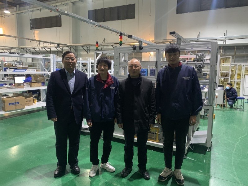在苏州汇川技术有限公司考察过程中,公司副总监段元兴对常纺领导和老师的来访表示热烈欢迎,并陪同吴访升、张文明一行参观了公司产品的研发、生产及应用领域等相关场所。吴书记在参观时强调,机电学院要结合学校特色,与汇川公司在纺织智能装备的研发、校企共同培养人才方面加强深度合作,通过产教融合更好地服务纺织行业的智能化发展,从而实现高质量人才培养。