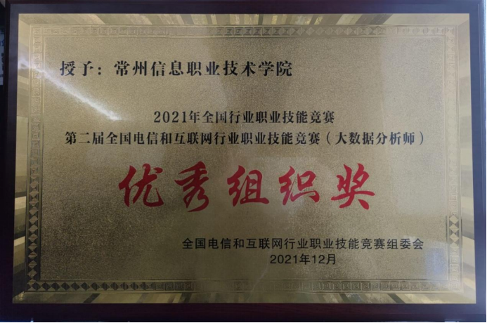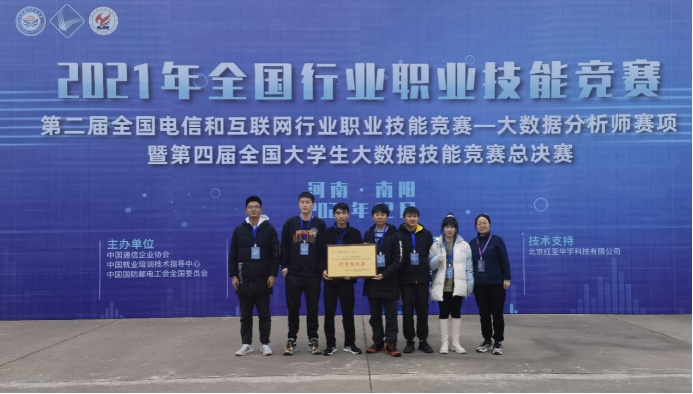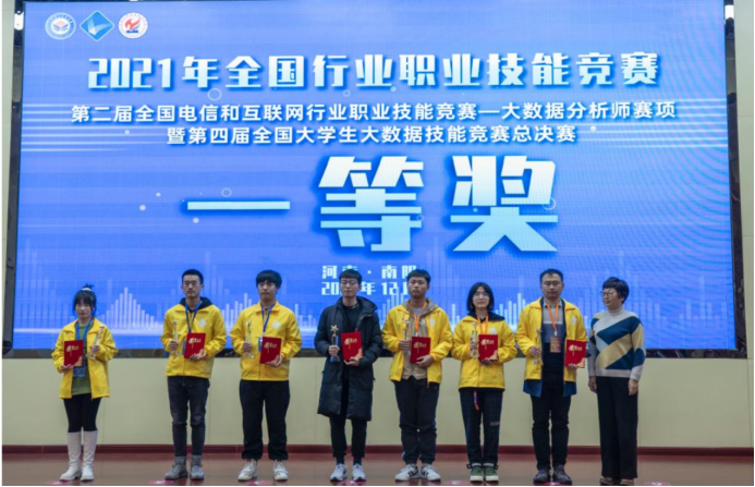 12月16日,第二届全国电信和互联网行业职业技能竞赛(大数据分析师赛项)暨第四届全国大学生大数据技能竞赛总决赛在河南工业职业技术学院举办,来自全国33所高职校、40所本科院校共73只队伍展开激烈角逐。我校软件与大数据学院丁慧、毕嘉娜老师指导的明良枝、蓝雨欣、侯正龙三位同学获得高职团体一等奖,郭永洪、贺萌老师指导的周淼、周子齐、赵霆云三位同学获得高职团体三等奖。我校获得“优秀组织奖”荣誉称号。
