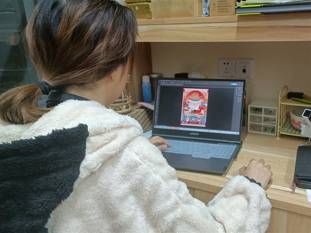 国赛一等奖作品《趣游红址》作者李千慧创作中