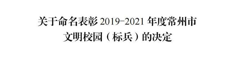近日,常州市精神文明指导委员会发布了《关于命名表彰2019—2021年度常州市文明校园(标兵)的通知》(常文明委〔2022〕12号),常州机电职业技术学院获评“2019-2021年度常州市文明校园标兵”。据悉,经过自查公示、自愿申报、推荐审核、综合考评、征求意见、媒体公示等程序,本次全市共有43所学校(其中,5所在常高校)获此称号。