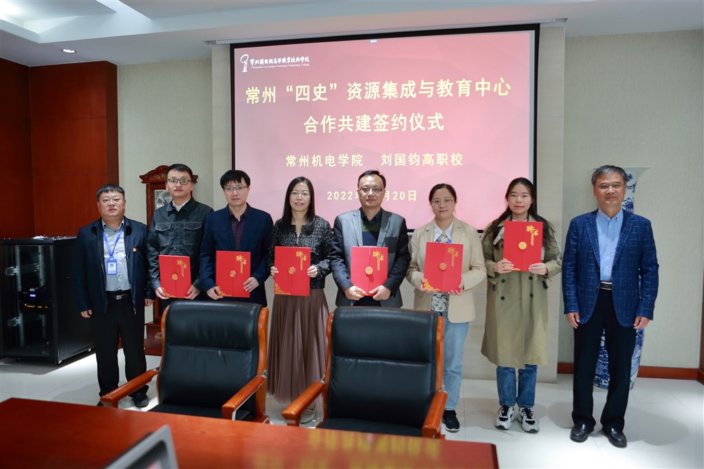 10月20日,常州机电职业技术学院与常州刘国钧高等职业技术学校举行常州“四史”集成与教育中心合作共建签约仪式。学校党委书记沈琳、党委副书记朱平,常州刘国钧高等职业技术学校校长林春、党委副书记熊青云出席,我校党委委员、党办校办主任彭银年,党委委员、马克思主学院院长毛加明和马克思主义学院部分教师参加签约仪式。