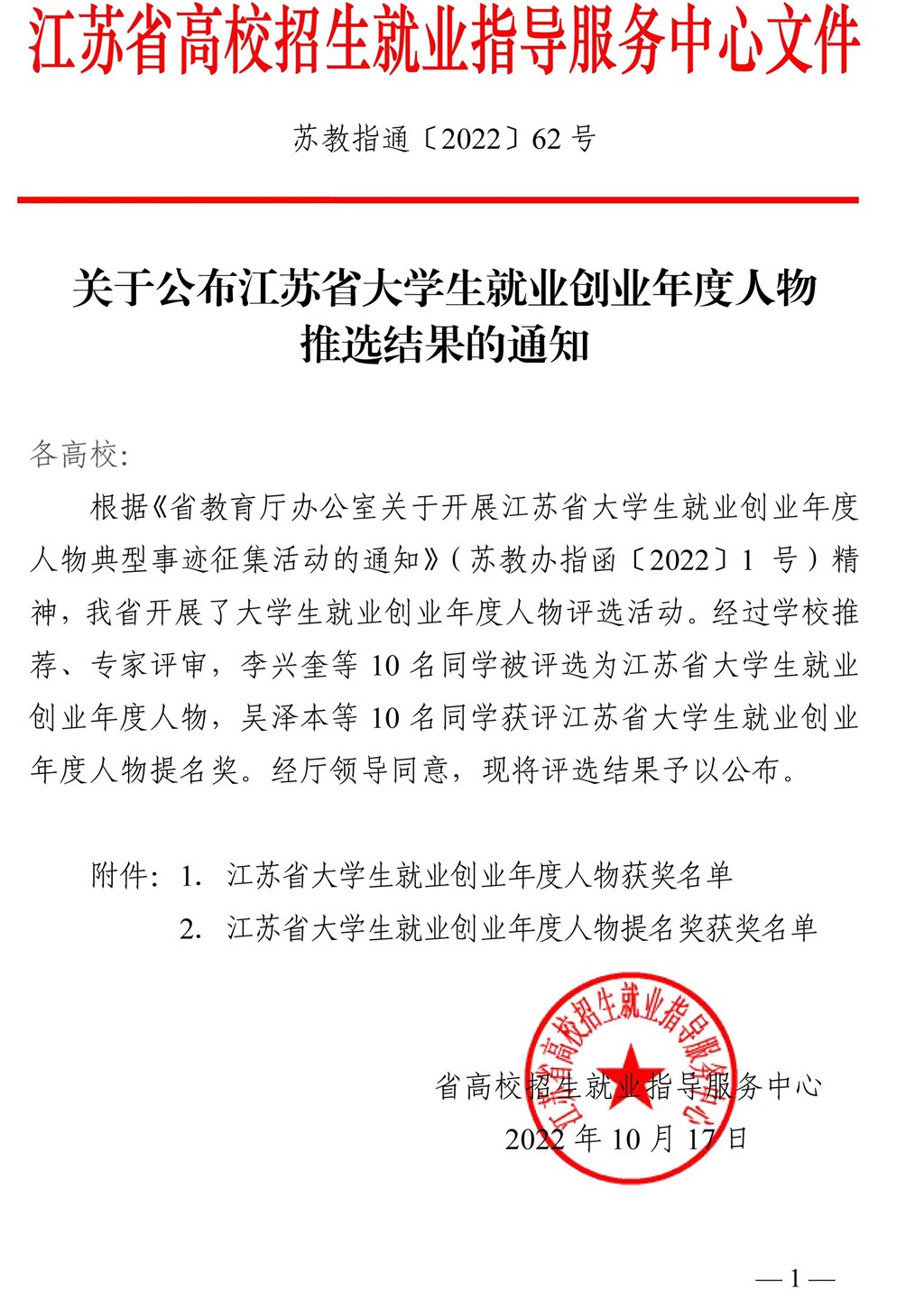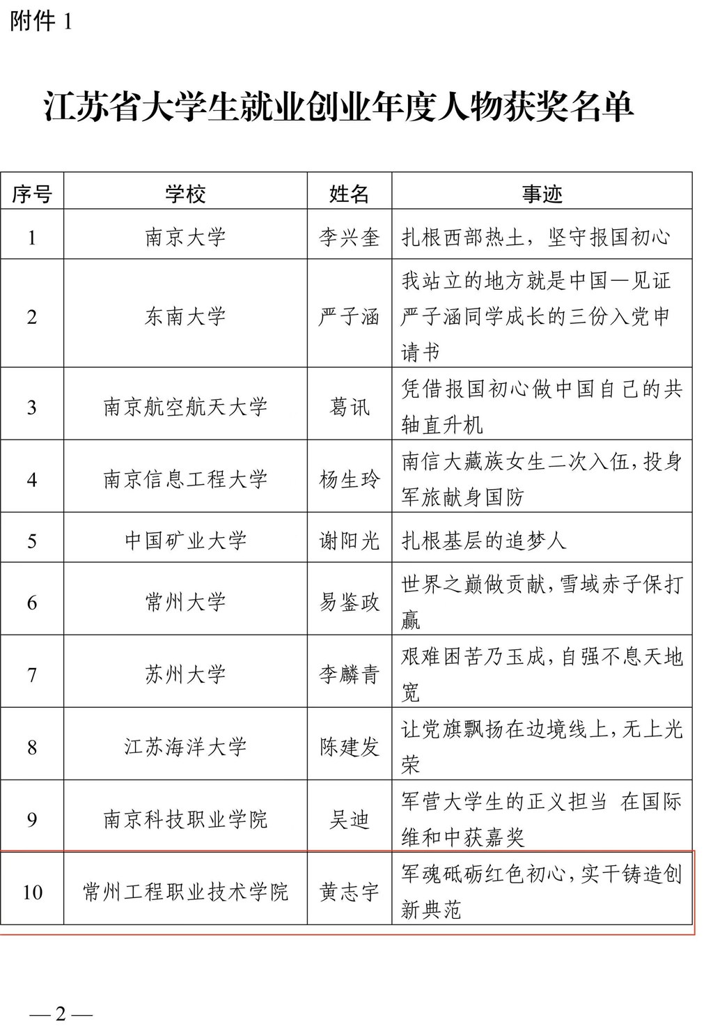 本次评选活动由江苏省教育厅举办,经过学校推荐,两轮专家评审,评选出江苏省大学生就业创业年度人物10名、提名奖10名,旨在表彰他们在基层就业、征兵入伍、创新创业等方面的突出作为。