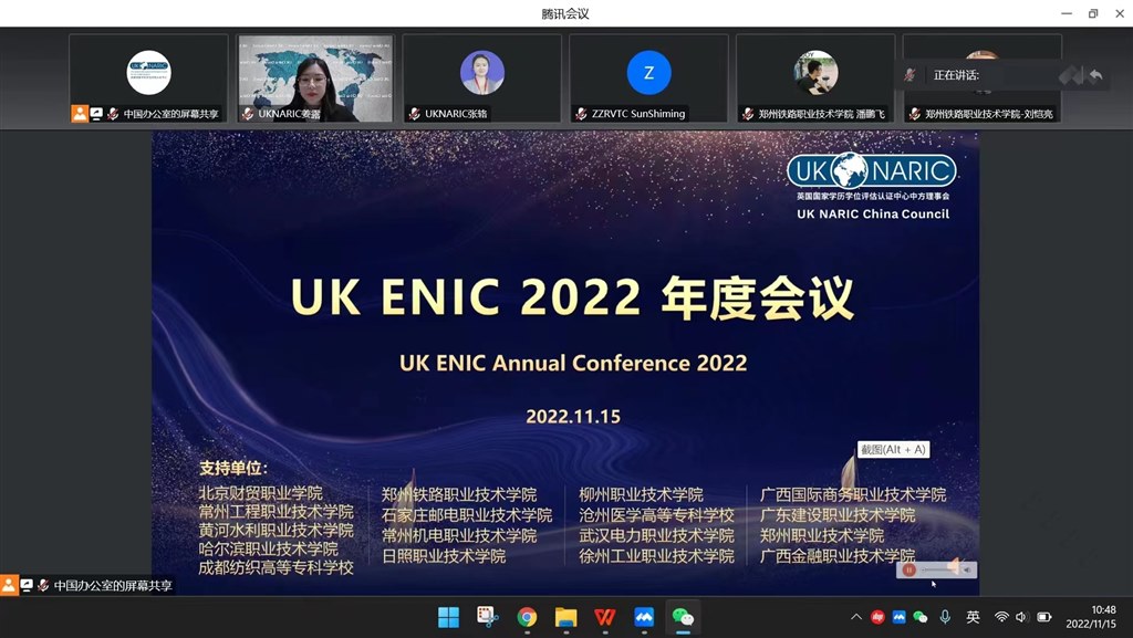 英国国家学历学位评估认证中心(UK ENIC)2022年全球国际学术年会于北京时间11月15日至16日在澳大利亚、加拿大和印度3个不同时区主办,国内外教育界人士近千人线上参会。我校党委副书记、校长李雄威应邀在澳大利亚专场会议上作《创新赋能?聚力打造卓越化工技术技能人才培养高地》报告,党委委员、副校长施福新、国际合作交流处处长李清、化工学院院长李东升等在线参加会议。会议由UK ENIC全球合作伙伴关系部主任史蒂夫?米勒(Steve Miller)主持。