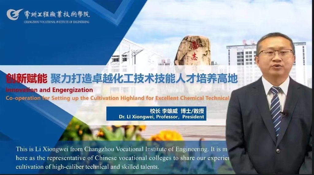 李雄威分享了学校培养卓越技术技能人才的经验和做法,介绍了我校高水平专业群建设项目:应用化工技术专业群的建设与实践,通过实施专业国际化内涵提升工程、中外合作深化工程以及专业输出引领工程三大工程,深入推进专业国际化建设。他提出学校国际化发展展望:坚定不移地走开放办学、融合办学之路,汇聚全球高端职教资源,打造行业都认可、国际可交流的高素质技术技能人才培养基地。实施国际先进职教资源吸收转化计划,提升专业建设国际化水平。实施留学常工品牌计划,提升国际通用人才供给能力。实施中国职教方案输出计划,扩大技能人才培养对“一带一路”建设的支撑力。