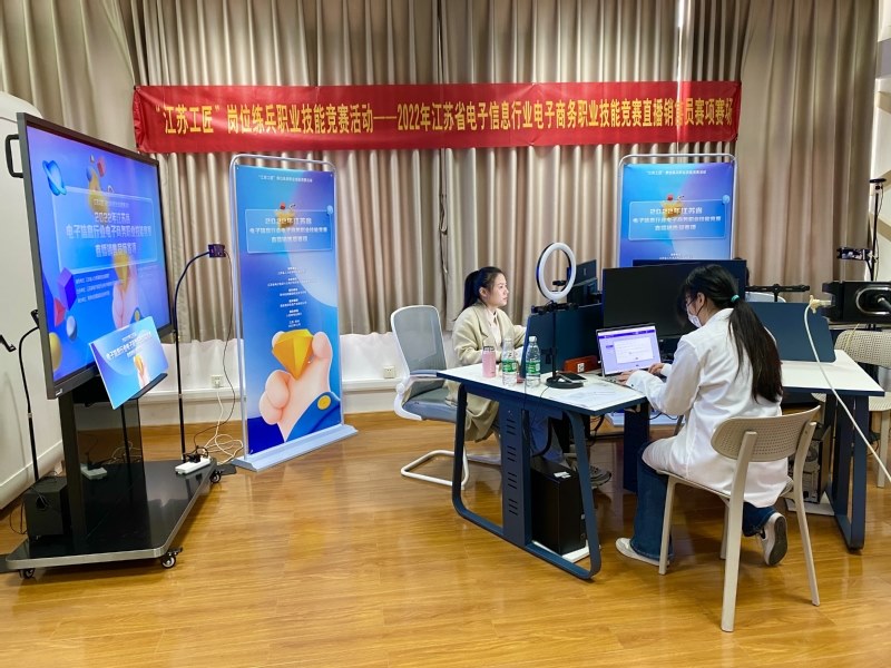为全面贯彻落实中央和省委人才工作会议精神,培育知识型、技能型、创新型劳动大军,11月27日,“江苏工匠”岗位练兵职业技能竞赛活动2022年江苏省电子信息行业电子商务职业技能竞赛直播销售员赛项总决赛在常州纺织服装职业技术学院成功举办。