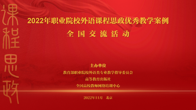 该赛事由教育部职业院校外语类专业教学指导委员会、高等教育出版社、全国高校教师网络培训中心联合举办,旨在推进高等学校英语教育教学改革,推动外语课程思政建设与应用,助力高等职业院校外语教学高质量发展。从今年4月发布初赛通知到11月国赛圆满落幕,历时7个多月。在通识部领导和英语教研室的支持下,团队三位老师全身心投入,坚持到底,不负众望,为学校赢得了荣誉。(通识部?娄立国 文/图 盛杨/审 )