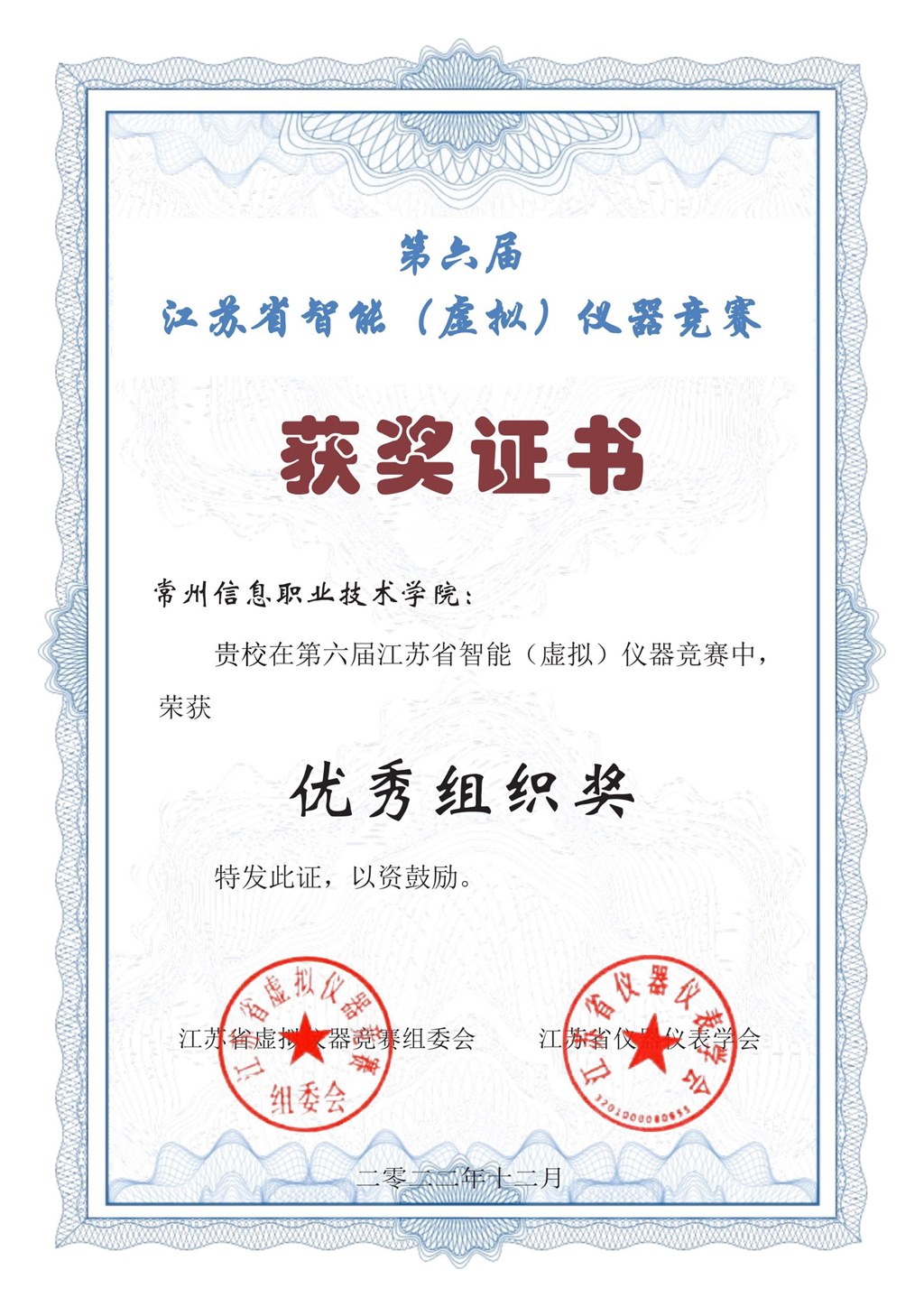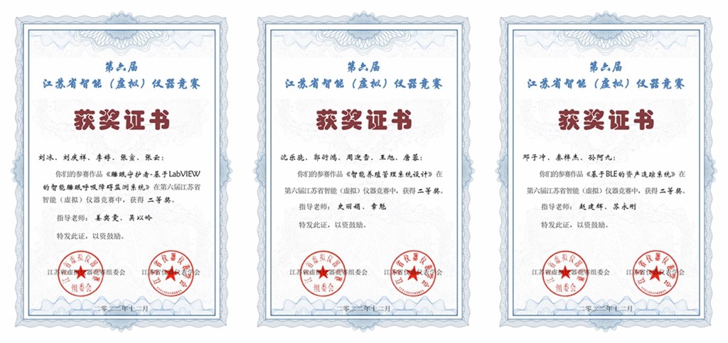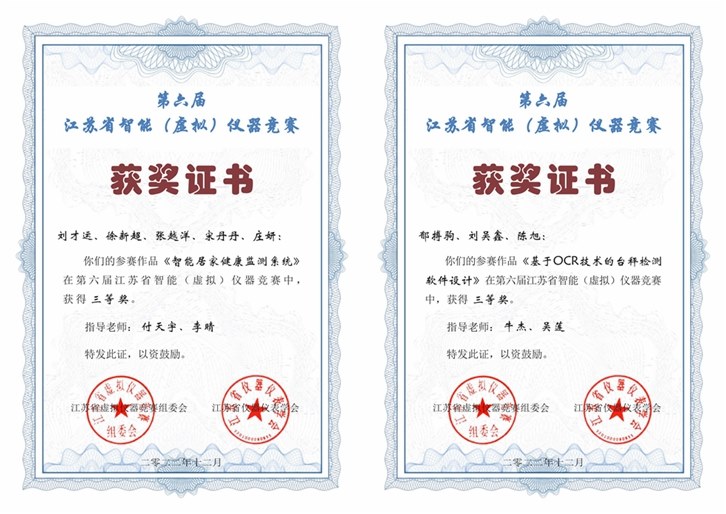江苏省智能(虚拟)仪器竞赛由江苏省虚拟仪器竞赛组委会、江苏省仪器仪表学会等主办,是省内工科类院校公认的智能(虚拟)仪器领域最权威、最具影响力的大学生科技创新竞赛。大赛每两年举办一次,至今已成功举办六届。大赛共有省内26所高校126支代表队参赛,分为工程应用与创新组、软件组、硬件组,着重考察参赛学生综合运用基础知识进行仪器设计的能力、实践创新能力与实验综合技能等。经预审、初赛、线上决赛等环节,本届大赛共评选出一等奖17项,二等奖46项,三等奖25项,优秀组织单位5项。