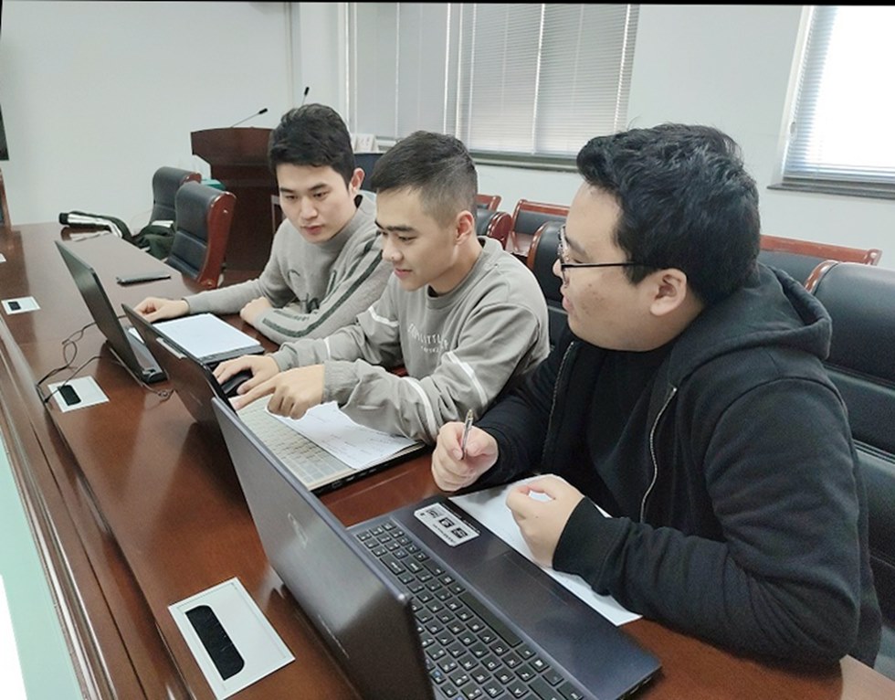 中兴专项奖、国家一等奖获奖团队备赛中(左起肖德豪、张铤波、陈佳璐)