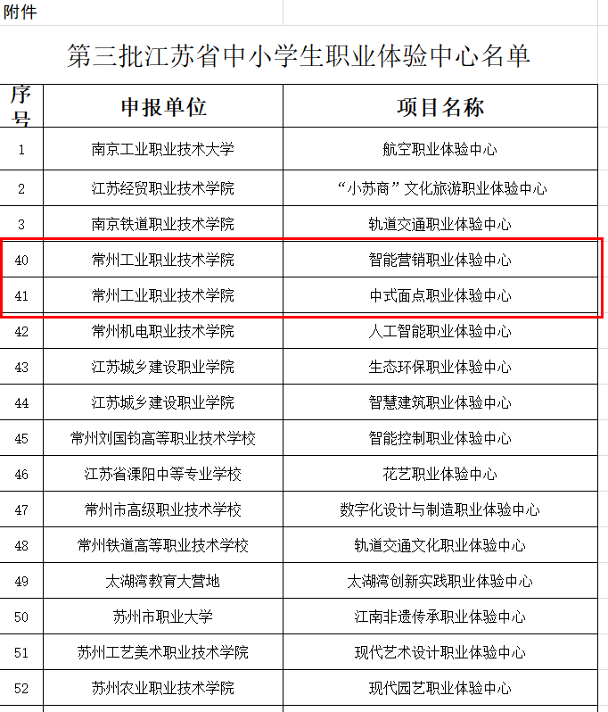 根据《省教育厅办公室关于开展第三批省级中小学生职业体验中心认定工作的通知》要求,经二级学院自主申报,继续教育学院民主测评,市级推荐,省教育厅组织专家审核,常州工业职业技术学院经贸管理学院的智能营销职业体验中心和旅游与烹饪学院的中式面点职业体验中心被认定为省级中小学生职业体验中心。