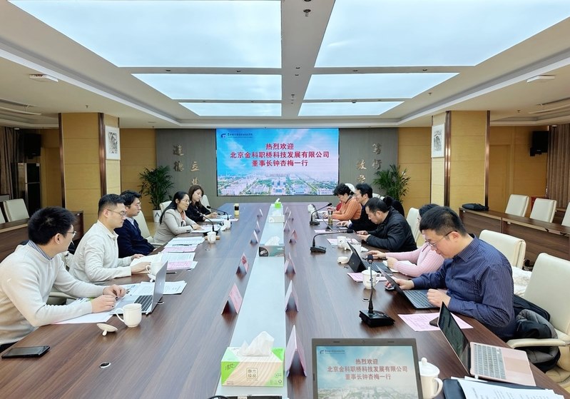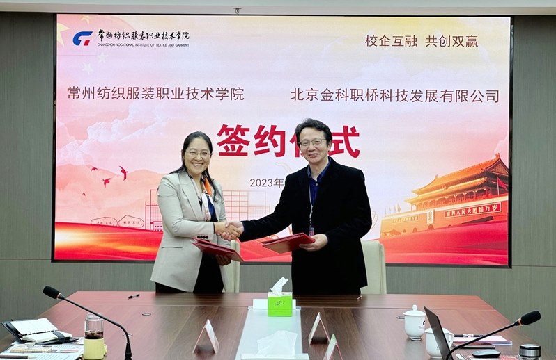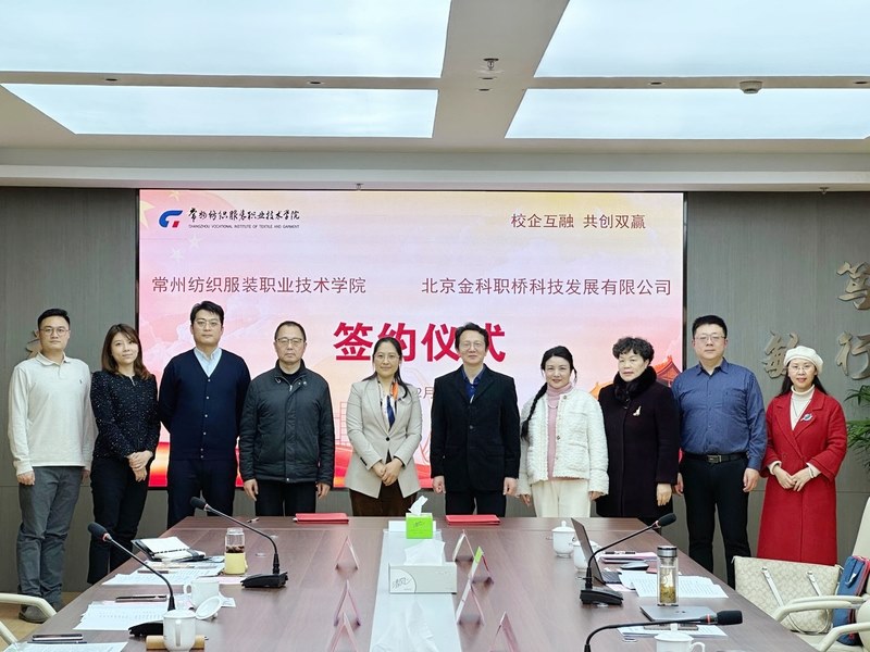 2月21日,北京金科职桥科技发展有限公司(简称“金融街职业教育”) 董事长钟杏梅率副总经理于跃、产品教研中心主任王乐珏、产教融合中心项目经理高瞻、产教融合中心项目经理黄建一行来常州纺织服装职业技术学院进行交流研讨,校党委副书记、院长洪霄,党委委员、副院长邓凯,校企合作处处长李爱红、人文学院党总支书记韩兰娟、人文学院副院长韩瑞及专业团队参加交流,会议由韩瑞主持。