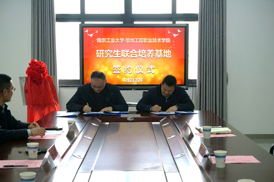 2月24日下午,南京工业大学交通运输工程学院院长周峰、党委副书记刘全振一行来常州工程职业技术学院签约共建“研究生联合培养基地”。学院党委委员、副校长潘玉琴,建工学院院长魏建军、副院长徐小明、郁邦永出席了签约仪式。