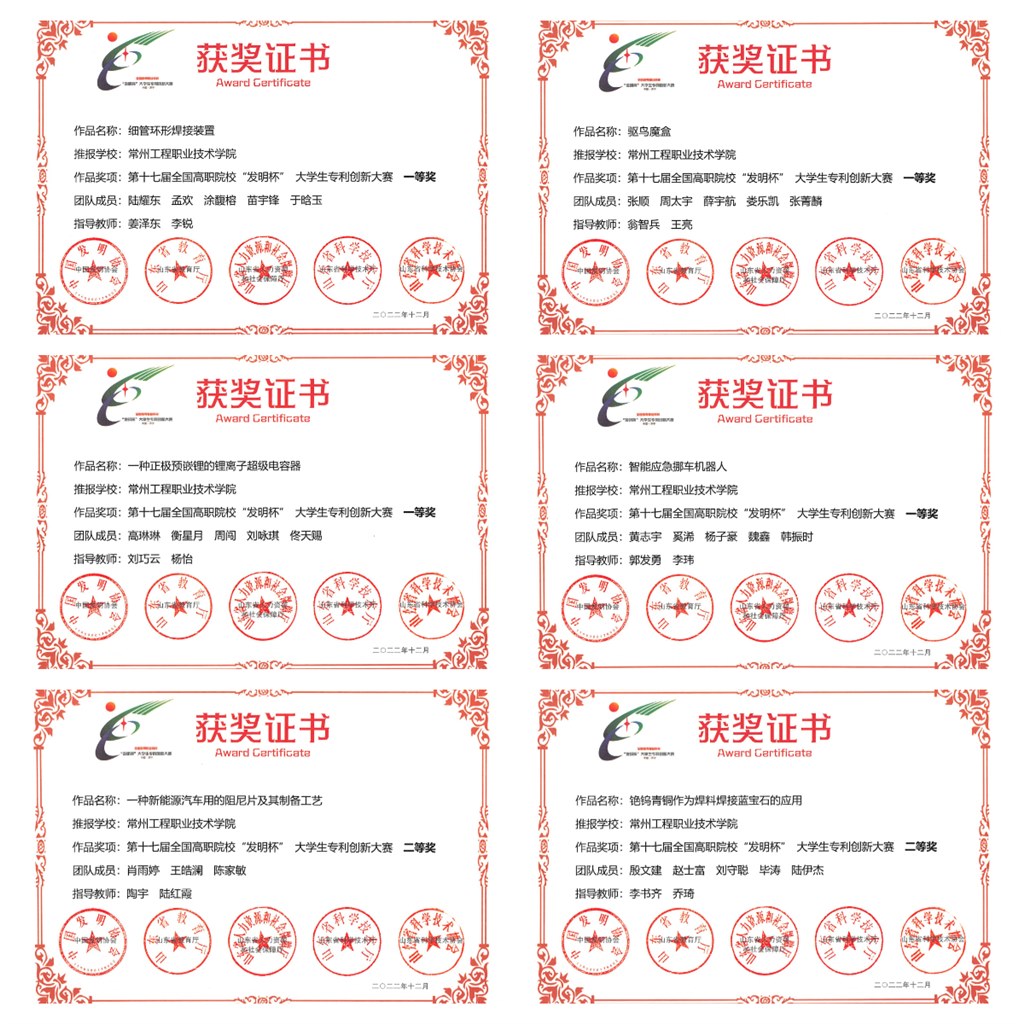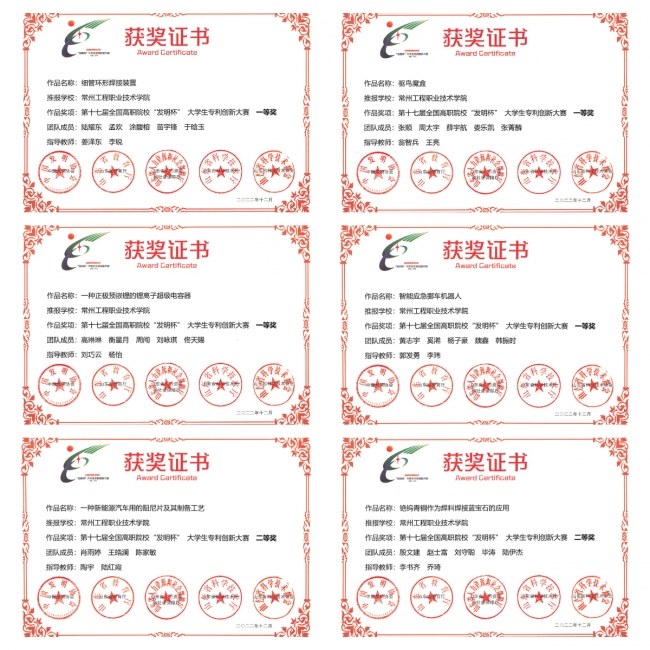 近日,由中国发明协会联合山东省教育厅、人社厅、科技厅主办的第十七届全国高职院校“发明杯”大学生专利创新大赛结果揭晓。常州工程职业技术学院参赛项目获全国一等奖4项、二等奖2项。