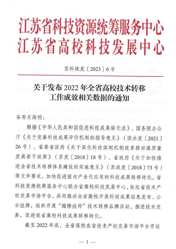 近年来,学校充分利用江苏省科技资源统筹服务云平台,对接行业和地方产业需求,积极参加江苏省“专利(成果)拍卖季”和“J-TOP创新挑战季”等“揭榜挂帅”技术转移品牌活动,实现了人才和成果从学校到企业、到产业的流动,有效推进产教融合、科教融汇,不断实现科研创新链与人才链、产业链、教育链的深度融合,推动了江苏经济发展与企业的转型升级。