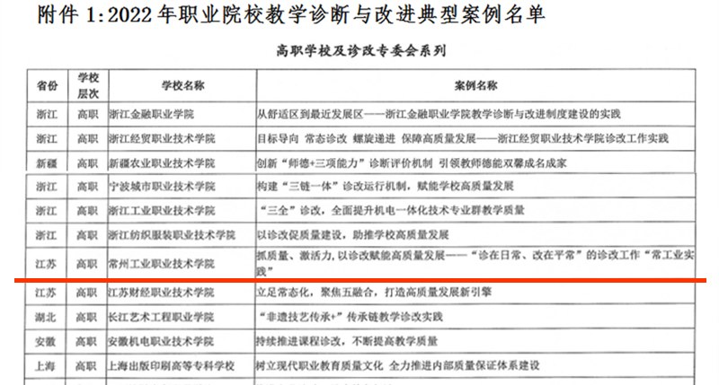 近日,中国教育科学研究院公布了2022年职业院校教学诊断与改进典型案例评选结果,常州工业职业技术学院《抓质量、激活力,以诊改赋能高质量发展——“诊在日常、改在平常”诊改工作“常工业实践”》案例成功入选。