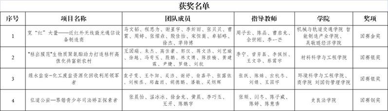 学校于2021年3月份启动本届竞赛的备赛工作,两年来,经校内遴选、省赛选拔、国赛网评以及终审决赛等各环节,学校机械与轨道交通学院 智能制造产业学院、吴敬琏经济学院的参赛项目《宽“红”大量—近红外无线激光通信设备制造商》荣获金奖;材料科学与工程学院的参赛项目《“秸出膜范”生物质聚氨酯助力打造秸秆高值化共富新农村》,环境科学与工程学院、商学院 刘国钧管理学院的参赛项目《绿水盐安—化工废盐资源化回收利用领军者》分获银奖;史良法学院的参赛项目《弘道公益—罪错青少年司法矫正探索者》荣获铜奖。