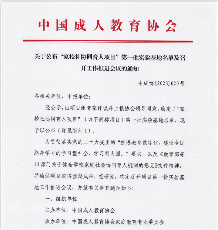 日前,中国成人教育协会发布《关于公布“家校社协同育人项目”第一批实验基地名单及召开工作推进会议的通知》,常州工程职业技术学院成功入选第一批实验基地。此次入选是对学校在家校社协同育人方面取得成绩的充分肯定,也为学校进一步开展好家校社协同育人项目奠定了基础。