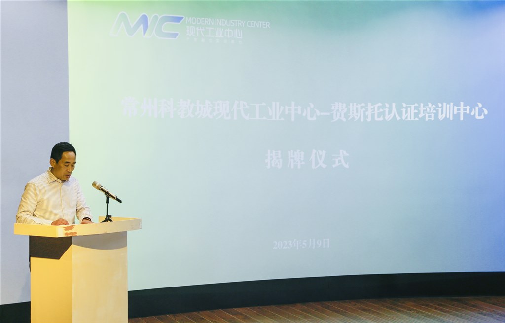 5月9日下午,常州科教城现代工业中心-费斯托认证培训中心在现代工业中心举行揭牌仪式,科教城管委会副主任、现代工业中心主任庄三舵和费斯托公司代表共同为活动揭牌,园区高校相关领导及老师,工业中心相关人员参加活动。