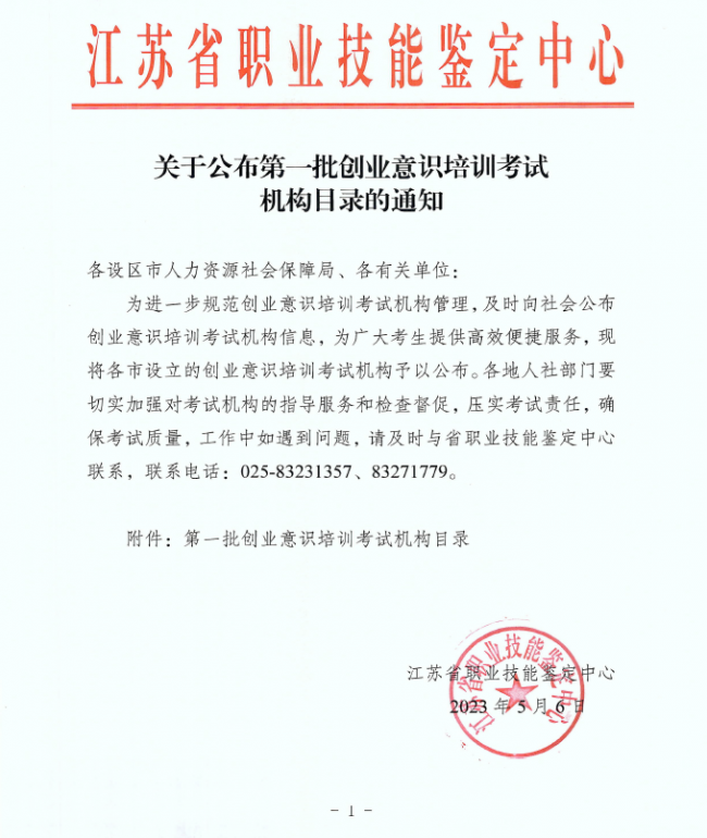 近日,江苏省职业技能鉴定中心发布《关于公布第一批创业意识培训考试机构目录的通知》,常州工程职业技术学院获顺利通过审核,获评江苏省第一批创业意识培训考试定点机构。