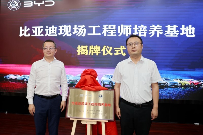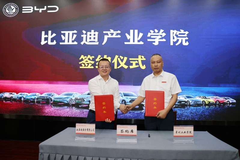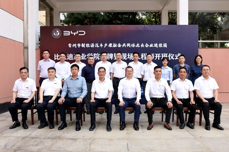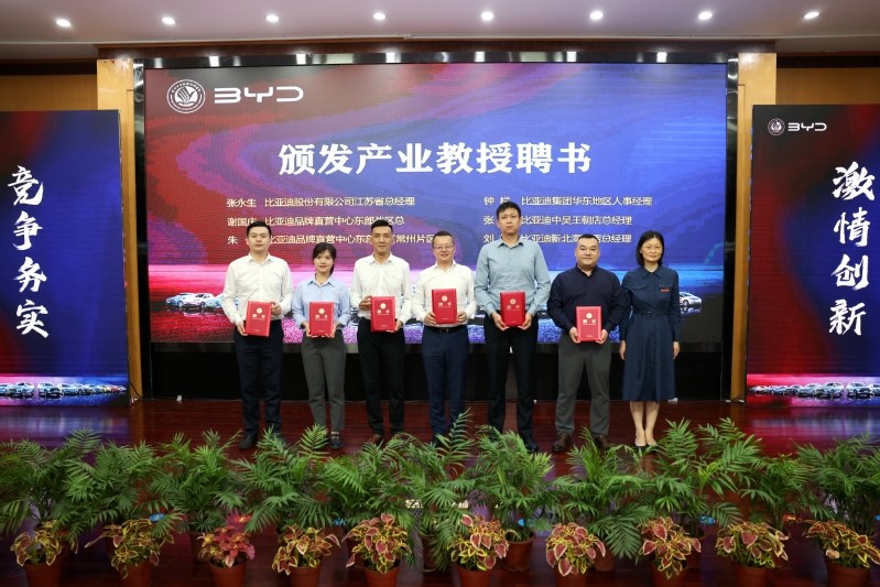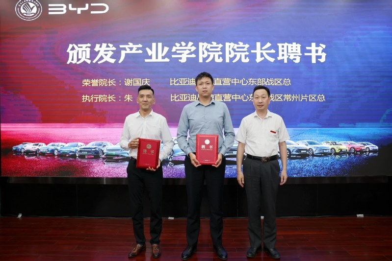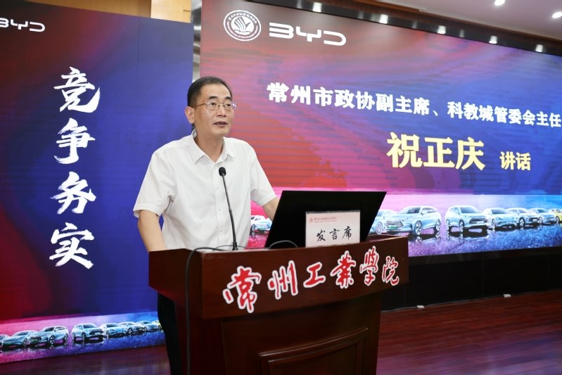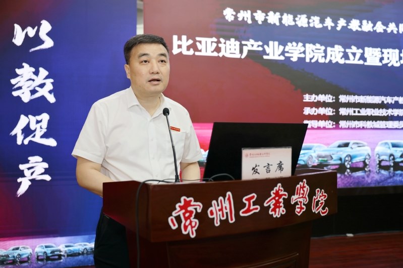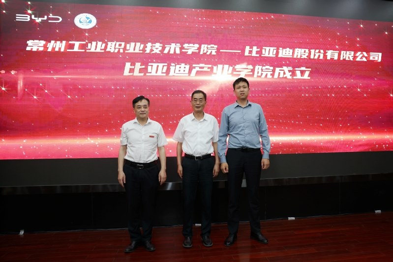 6月12日,常州工业职业技术学院举办常州市新能源汽车产教融合共同体龙头企业进校园活动,并举行比亚迪产业学院成立暨现场工程师开班仪式。常州市政协副主席、科教城管委会主任祝正庆,科教城管委会副主任庄三舵,教育发展处处长周洋,学校党委副书记、校长杨劲松,校党委副书记毛伯民,副校长姚庆文、周丽以及比亚迪股份有限公司江苏省总经理张永生、比亚迪品牌直营中心东部战区总谢国庆等出席了活动。会议由学校党委书记席海涛主持。