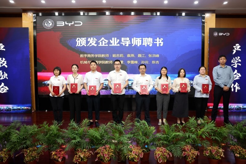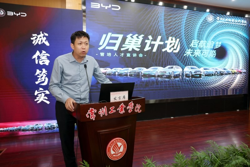 会上,还举行了常州市新能源汽车产教融合共同体“新能红盟”揭牌仪式、比亚迪现场工程师培养基地揭牌仪式、校企双导师聘任仪式等,数字商务学院21统计核算633班章松蓉作为现场工程师班学员代表发言,谢国庆代表比亚迪发布“归巢”计划。