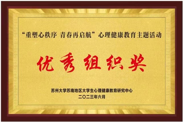 苏南地区大学生心理健康教育研究中心对苏南地区各高校在 3.20 至 5.25 期间举办的大学生心理健康教育主题活动组织了评比工作。共32所高校参加,经过专家组评审,11 所高校荣获“先进集体奖”,5所高校荣获“优秀组织奖”。学校同时斩获“先进集体奖”和“优秀组织奖”。