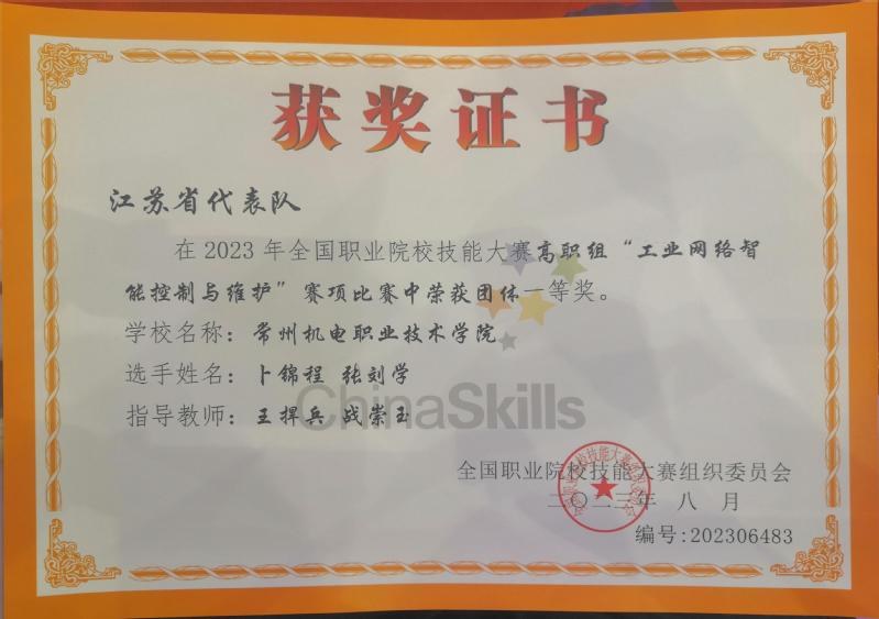 8月15日-17日全国职业院校技能大赛“工业网络智能控制与维护”赛项在包头举行,来自全国30个省、自治区、直辖市和新疆生产建设兵团的131支参赛队参加比赛。由常州机电职业技术学院电气工程学院党总支书记周斌领队,王捍兵、战崇玉指导,卜锦程、张刘学组成的团队获得学生组赛项一等奖,指导教师王捍兵、战崇玉获得“优秀指导教师”称号。