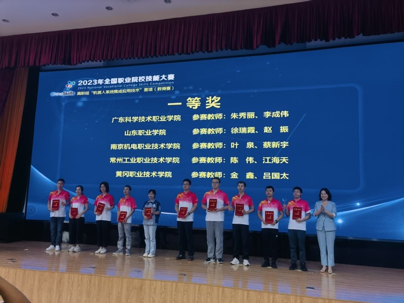 8月24日,全国职业院校技能大赛“机器人系统集成应用技术”赛项教师组比赛开赛,来自全国各省、自治区、直辖市的53支教师代表队参赛。常州工业职业技术学院智能控制学院陈伟、江海天老师以优异成绩获得该赛项的一等奖,成功摘取我校今年在该赛项的第二枚金牌。
